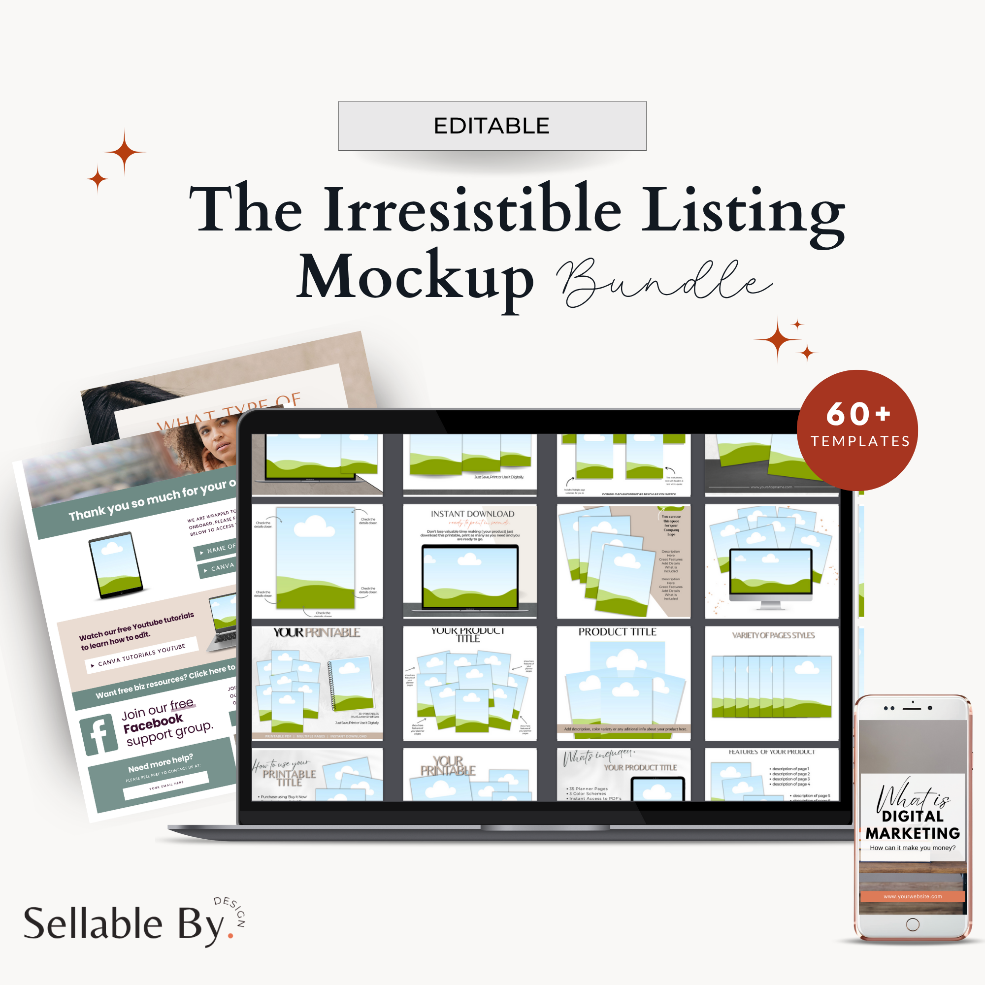 A done-for-you collection of Canva mockups, marketing graphics, and product delivery designed to make your listings look as good as they actually are.
